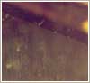 In normal transmitted light – bright field in the diamonds microscopically can be seen manifold additional topographic features. Characteristic for many rough natural diamonds are etch pits on the surfaces, namely so called trigons on the octahedral faces or rectangles on the rhombododecahedral faces, growth- or solution steps and banded structures with different causes.